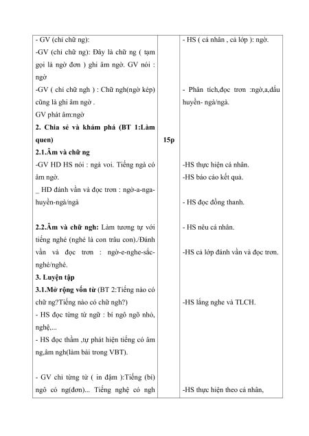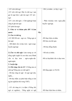 -GV HD HS nói : ngà voi. Tiếng ngà có -HS thực hiện cá nhân. âm ngờ. -HS báo cáo kết quả.