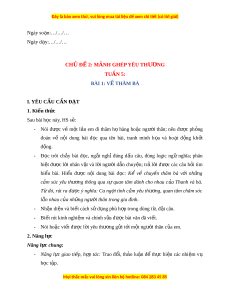 ề câu văn hay trong bài đ c). ọ 3. Ph m ẩ ch t ấ - B i ồ d n ưỡ g ph m ẩ ch t ấ nhân ái, trung th c, ự trách nhi m ệ , s n ẵ sàng yêu th n ươ g, chia s ẻ v i ớ b n ạ bè, ng i ườ thân.