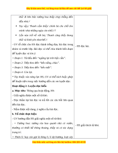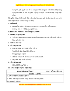 - Giáo án, SHS, SGV, SBT Ti n ế g Vi t ệ 4. - Tranh ho c ặ n ả h ch p ụ SHS phóng to. - B n ả g ph ụ ghi đo n ạ 3. - Th ẻ t , ừ th ẻ câu đ ể t ổ ch c ứ cho HS ch i ơ trò ch i ơ . - Máy tính, máy chi u ế (n u ế có). b. Đ i ố v i ớ h c ọ sinh - SHS, SBT Ti n ế g Vi t ệ 4. III. CÁC HO T Ạ Đ N Ộ G D Y Ạ H C Ọ HO T Ạ ĐỘNG C A Ủ GV HOẠT ĐỘNG C A Ủ HS TI T Ế 1 – 2: Đ C Ọ A. HO T Ạ Đ N Ộ G KH I Ở Đ N Ộ G a. M c ụ tiêu: T o ạ tâm thế h n ứ g thú cho HS t n ừ g b c ướ làm quen v i ớ bài h c. ọ