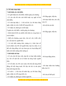 ươ g, quan tâm, chia s , ẻ chú ý đ n ế c m ả xúc c a ủ b n ạ bè, ng i ườ thân. + Có tinh th n ầ t n ươ g thân, t n ươ g ái, ý th c ứ h n ơ về trách nhi m ệ c a ủ HS v i ớ ng i ườ thân, b n ạ bè, th y ầ cô và đối v i ớ c n ộ g đ n ồ g, tích c c ự tham gia các ho t ạ đ n ộ g thể hi n ệ tinh th n ầ t n ươ g thân t n ươ g ái. * Gi i ớ thi u ệ bài h c ọ - GV yêu c u ầ HS làm vi c ệ c p ặ đôi và th c ự hi n ệ nhi m ệ - HS ho t ạ đ n ộ g nhóm. v : ụ Nói về m t ộ l n