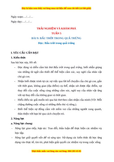 Đây là bản xem th , vu ử i lòng mua tài li u ệ đ xe ể m chi ti t ế (có l i ờ gi i ả ) Ngày so n: ạ …/…/… Ngày d y: ạ …/…/… TRẢI NGHI M Ệ VÀ KHÁM PHÁ TUẦN 5