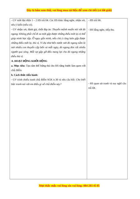 ạ cho đò ngang nh ng ữ điều thú v .ị A. HO T Ạ Đ N Ộ G KH I Ở Đ N Ộ G a. M c