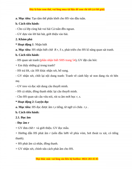 - HS nhận biết và đọc đúng các âm r, s; đọc đúng các tiếng, từ ngữ, câu có các âm r,