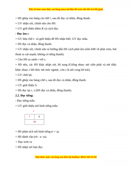 - GV: Nắm vững đặc điểm phát âm của âm r, s Chữ mẫu R r S s ; quy trình viết r, s;