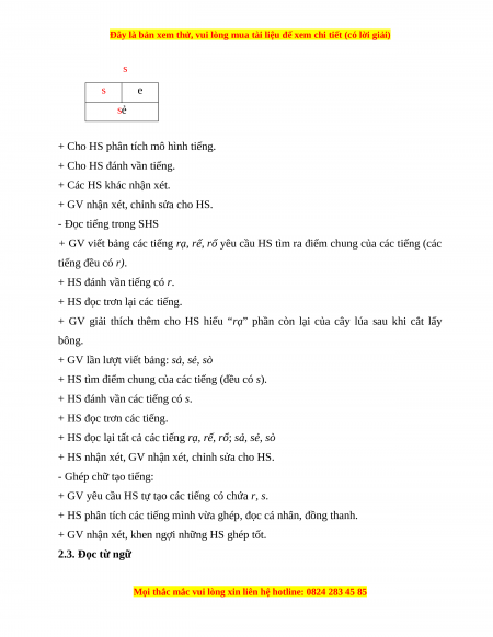 + HS đọc lại r, s (HS đọc cá nhân, đồng thanh). 2.2. Đọc tiếng: - Đọc tiếng mẫu