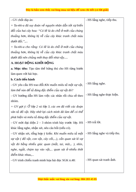 ủ cây khác tranh ch t ấ màu d i ướ đ t ấ nên ch n ủ g m i ớ thay đ i ổ nh ư v y ậ ..... A. HO T Ạ Đ N Ộ G KH I Ở Đ N Ộ G a. M c ụ tiêu: T o ạ tâm thế h n ứ g thú cho HS t n ừ g b c ướ làm quen v i ớ bài h c. ọ b. Cách ti n ế hành - GV yêu c u ầ HS trao đ i
