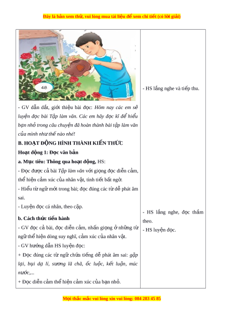 Đây là bản xem th , vu ử i lòng mua tài li u ệ đ xe ể m chi ti t ế (có l i ờ gi i ả ) - HS l n ắ g nghe và ti p ế thu. - GV d n ẫ d t ắ , gi i ớ thi u ệ bài đ c