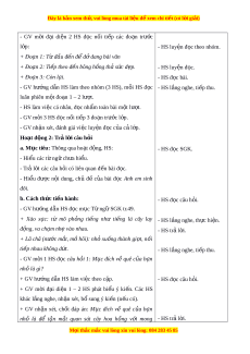 ụ tiêu: Thông qua ho t ạ đ ng ộ , HS: - Đ c ọ đ c ượ c ả bài T p ậ làm văn v i ớ gi n ọ g đ c ọ di n ễ c m, ả th ể hi n ệ c m ả xúc c a ủ nhân v t ậ , tình ti t ế b t ấ ng . ờ - Hi u ể t ừ ng ữ m i ớ trong bài; đ c ọ đúng các t ừ d ễ phát âm sai. - Luy n ệ đ c ọ cá nhân, theo c p ặ . - HS l n ắ g nghe, đ c ọ th m ầ b. Cách th c ứ ti n ế hành theo. - GV đ c ọ cả bài, đ c ọ di n ễ c m, ả nh n ấ gi n ọ g ở nh n ữ g từ - HS luy n ệ đ c. ọ ng ữ th ể hi n ệ dòng suy nghĩ, c m ả xúc c a ủ nhân v t ậ . - GV h n ướ g d n ẫ HS luy n ệ đ c: ọ + Đ c