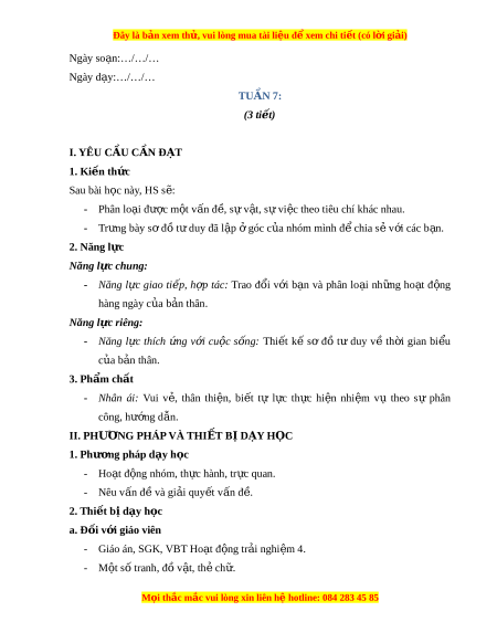 ệ đ xe ể m chi ti t (c ế ó lời gi i ả ) Ngày so n ạ :…/…/… Ngày d y ạ :…/…/… TUẦN 7: (3 ti t ế ) I. YÊU C U Ầ C N Ầ Đ T Ạ 1. Ki n ế th c ứ Sau bài h c ọ này, HS s : ẽ - Phân lo i ạ đ c ượ m t ộ v n ấ đ , ề s ự v t ậ , s ự vi c