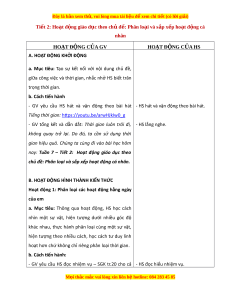 ệ đ xe ể m chi ti t (c ế ó lời gi i ả ) Tiết 2: Ho t ạ đ ng ộ giáo d c ụ theo ch ủ đ : ề Phân lo i ạ và s p ắ x p ế ho t ạ đ ng ộ cá nhân HO T Ạ ĐỘNG C A Ủ GV HO T Ạ ĐỘNG C A Ủ HS