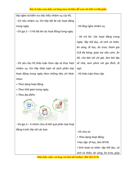 Hoạt động 1: Phân loại các hoạt động hằng ngày