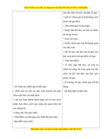 ệ theo tiêu chí khác nhau. - Tr n ư g bày s ơ đ ồ t ư duy đã l p ậ ở góc c a ủ nhóm mình đ ể chia s ẻ v i ớ các b n ạ . 2. Năng l c ự Năng l c ự chung: - Năng l c ự giao ti p ế , h p ợ tác: Trao đ i ổ v i ớ b n ạ và phân lo i ạ nh n ữ g ho t ạ đ n ộ g hàng ngày c a ủ b n ả thân. Năng l c ự riêng: - Năng l c ự thích n ứ g v i ớ cu c ộ s n ố g: Thi t