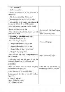 - Giáo viên viết mẫu chữ E, Ê cỡ vừa trên bảng - Quan sát và thực hành