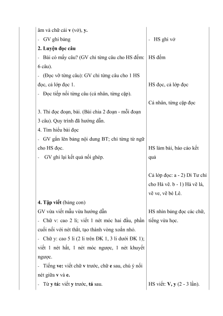 - Nhận biết âm và chữ cái v, y; đánh vần đúng, đọc đúng tiếng có v, y.