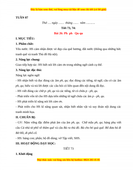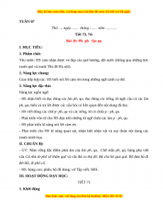 Thứ …. ngày …… tháng …… năm ………. Tiết 73, 74: Bài 26: Ph ph Qu qu I. MỤC TIÊU: 1. Phẩm chất: