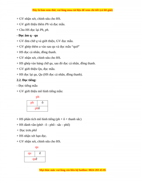 + HS đọc lại qu, Qu (HS đọc cá nhân, đồng thanh). 2.2. Đọc tiếng: - Đọc tiếng mẫu