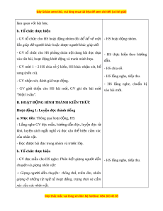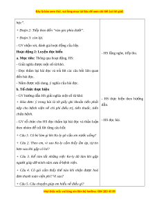 ụ tiêu: Thông qua ho t ạ đ n ộ g, HS: - L n ắ g nghe GV đ c ọ m u ẫ , h n ướ g d n ẫ đ c, ọ luy n ệ đ c ọ từ khó, luy n ệ cách ng t ắ nghỉ và đ c ọ câu th ể hi n ệ c m ả xúc c a ủ nhân v t ậ . - Đ c ọ đ c ượ bài đ c ọ trong nhóm và tr c ướ l p ớ . b. T ổ ch c ứ th c ự hi n ệ - GV đ c ọ m u