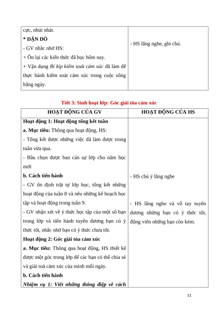 Tiết 1: Sinh hoạt dưới cờ: Làm chủ cảm xúc – Nghĩ tích cực HOẠT ĐỘNG CỦA GV HOẠT ĐỘNG CỦA HS
