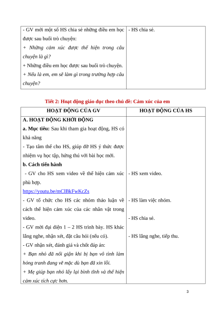 Tiết 2: Hoạt động giáo dục theo chủ đề: Cảm xúc của em HOẠT ĐỘNG CỦA GV HOẠT ĐỘNG CỦA HS