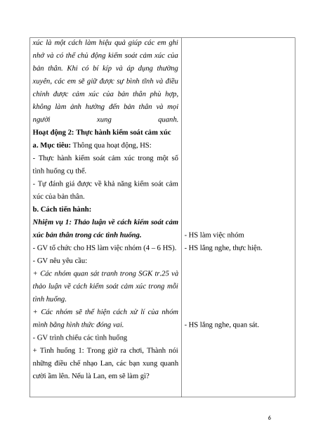 - Nhận diện được khả năng kiểm soát cảm xúc của bản thân. 2. Năng lực
