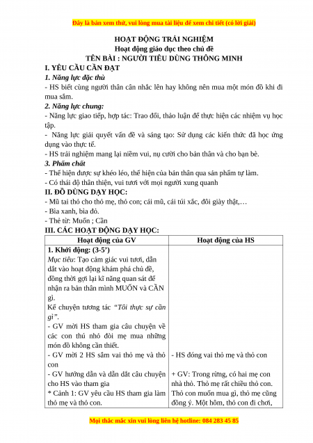 + giúp cho HS biết lên CẦN và MUỐN những gì - Cách tiến hành: