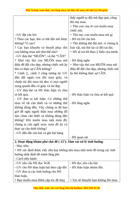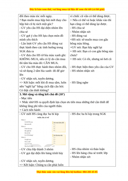 + Nhắc nhở HS ra quyết định lựa chọn ưu tiên mua những thứ cần thiết để