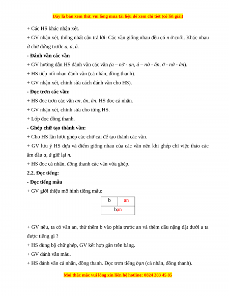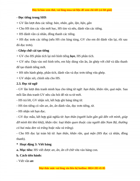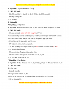 - GV: Nắm vững đặc điểm phát âm; cấu tạo và cách viết các vần an, ăn, ân; tìm hiểu