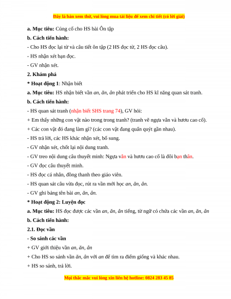 - HS nhận biết và đọc đúng các an, ăn, ân; đọc đúng các tiếng, từ ngữ, câu có các vần