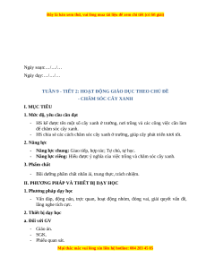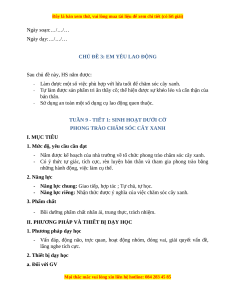 TUẦN 9 - TIẾT 2: HOẠT ĐỘNG GIÁO DỤC THEO CHỦ ĐỀ - CHĂM SÓC CÂY XANH I. MỤC TIÊU