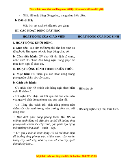 - Năng lực riêng: Nhận thức được ý nghĩa của việc chăm sóc cây xanh. 3. Phẩm chất