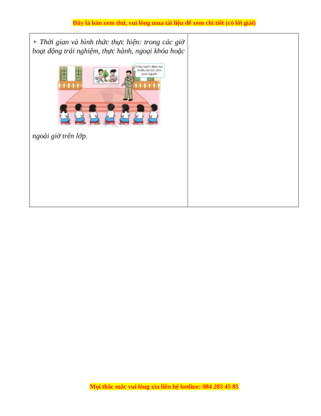 + Thời gian và hình thức thực hiện: trong các giờ
