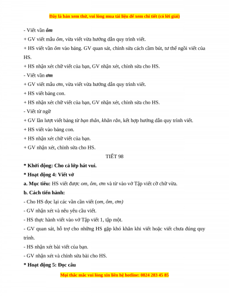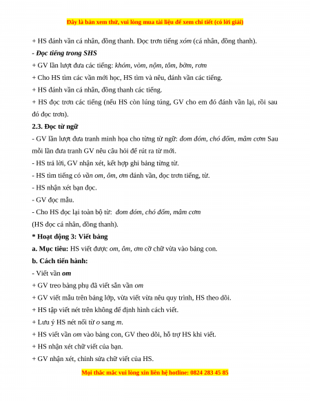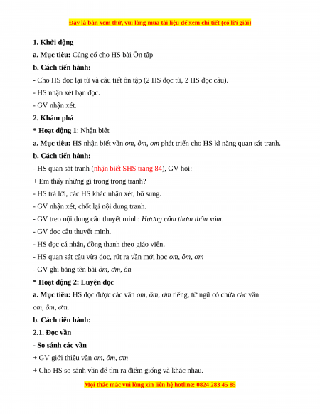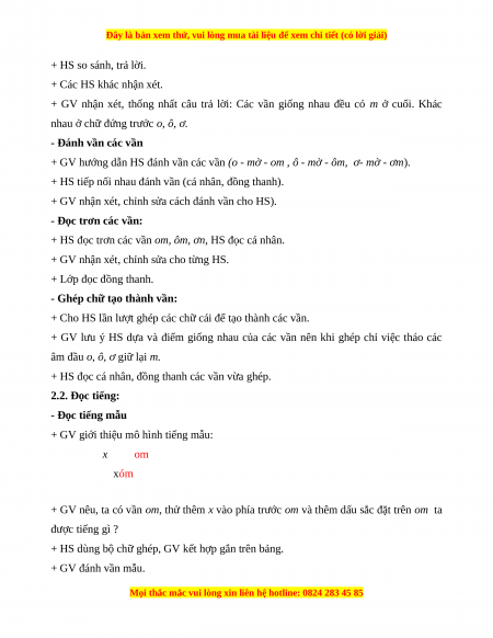 - GV: Nắm vững đặc điểm phát âm; cấu tạo và cách viết các vần om, ôm, ơm; Câu