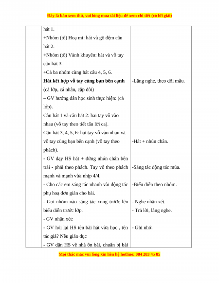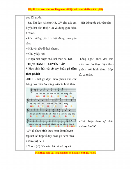 * Học sinh hát và vỗ tay hoặc gõ đệm