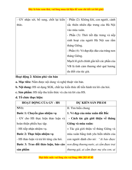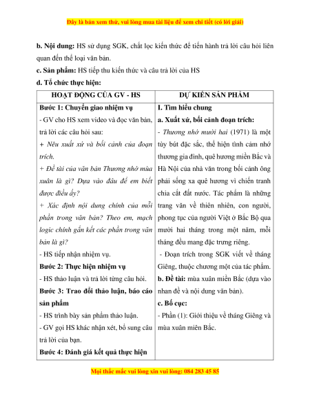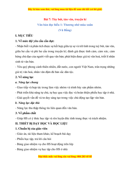 Văn bản đọc hiểu 1: Thương nhớ mùa xuân (Vũ Bằng) I. MỤC TIÊU