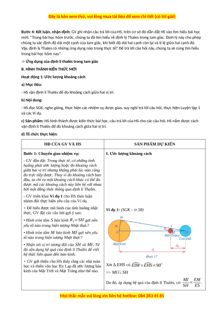 - HS vận định lí Thalès để đo khoảng cách giữa hai vị trí. b) Nội dung: