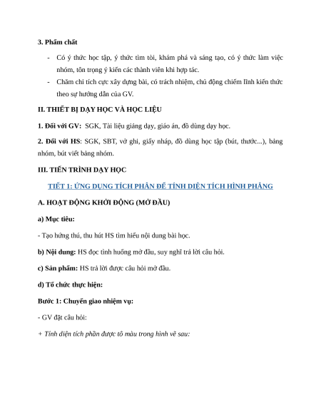 - Giải quyết vấn đề toán học: Tính được diện tích hình phẳng, thể tích vật thể theo yêu cầu bài toán.