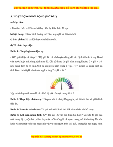 - GV giới thiệu về độ pH: “Độ pH là chỉ số chuyên dùng để xác định tính Axit hay Bazơ