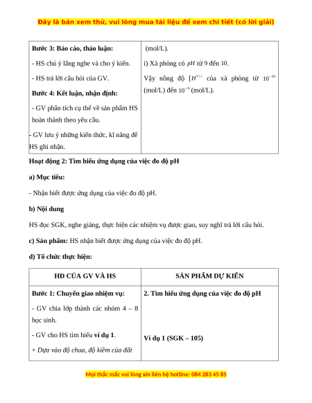 Bước 4: Kết luận, nhận định: GV dẫn dắt HS vào tìm hiểu bài học: “Việc đo độ pH của