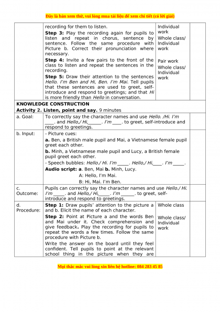 Activity 1. Look, listen and repeat. 8 minutes a. Goal:
