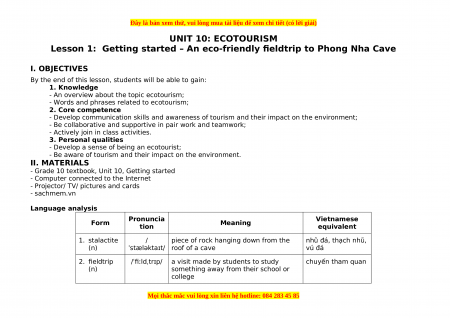 Lesson 1: Getting started – An eco-friendly fieldtrip to Phong Nha Cave I. OBJECTIVES
