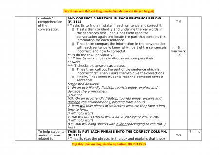 conversation and answer the questions: What can you see? (A cave / Phong Nha Cave) Who are the speakers? (Nam, Mai, and their teacher) What do you think they are discussing? (A trip to the cave). T-S