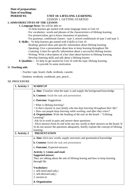PERIOD 93: UNIT 10: LIFELONG LEARNING
