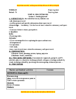 Preparing date: Period: 79 Teaching date: UNIT 10. SPACE TRAVEL