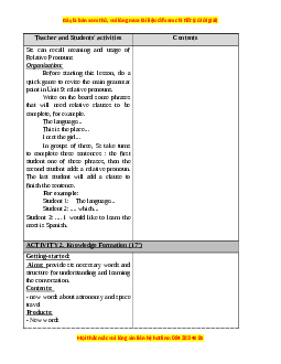 - Grammar: Relative clause, past perfect. 2. Qualities: Skills: - Practicing skills. Attitudes: