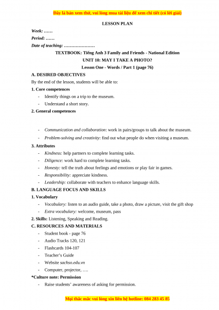 C. RESOURCES AND MATERIALS - Student book - page 76 - Audio Tracks 120, 121 - Flashcards 104-107 - Teacher’s Guide - Website sachso.edu.vn - Computer, projector, ….