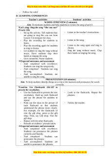 - Follow the rules! D. LEARNING EXPERIENCES Teacher’s activities Students’ activities