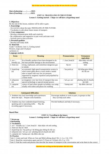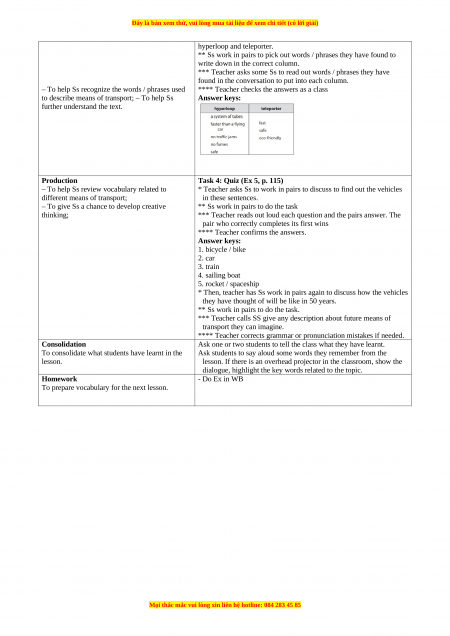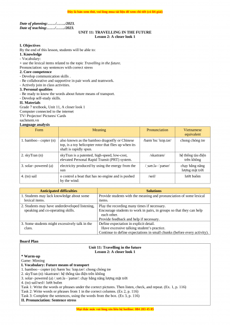 - Vocabulary to talk about future means of transport. 2. Core competence