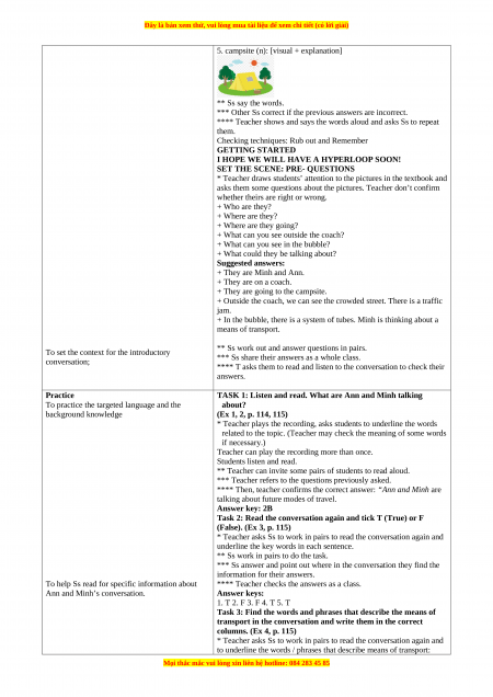 5. campsite (n) /ˈkæmp.saɪt/: địa điểm cắm trại II. Practice