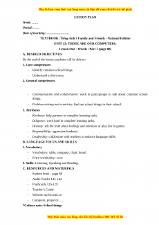 C. RESOURCES AND MATERIALS - Student book - page 88 - Audio Tracks 141, 142 - Flashcards 126-129 - Teacher’s Guide - Website sachso.edu.vn - Computer, projector, ….