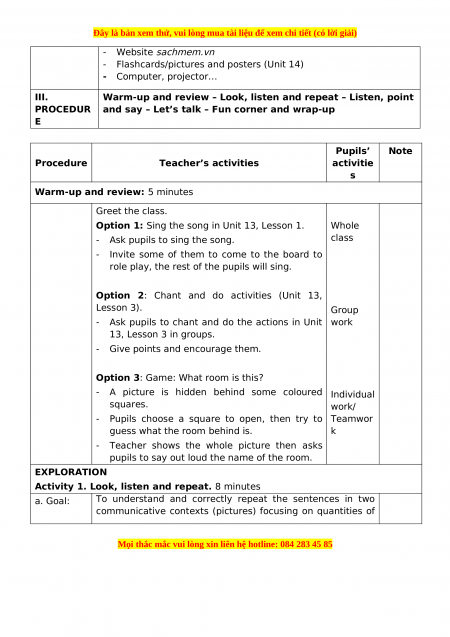 Warm-up and review – Look, listen and repeat – Listen, point PROCEDUR